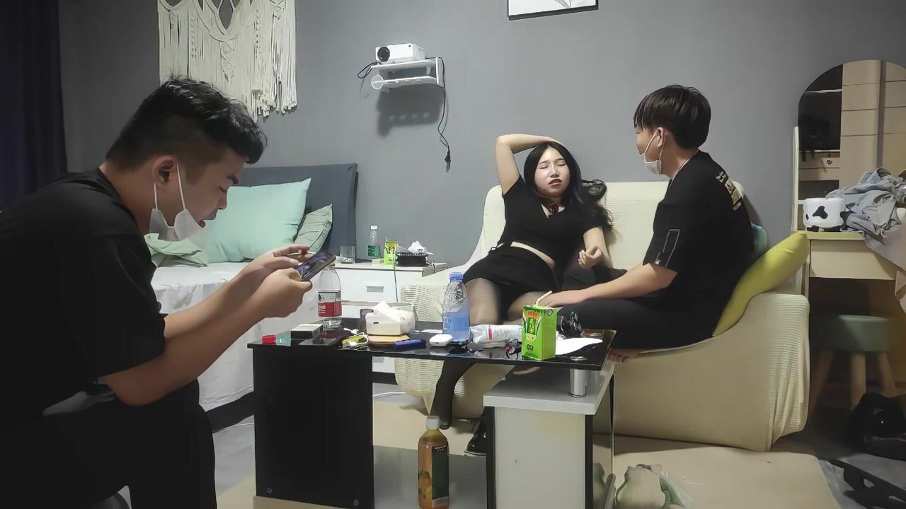 3个年轻的女孩子,其中一个才18岁,挑一个最骚的拉到一边就干