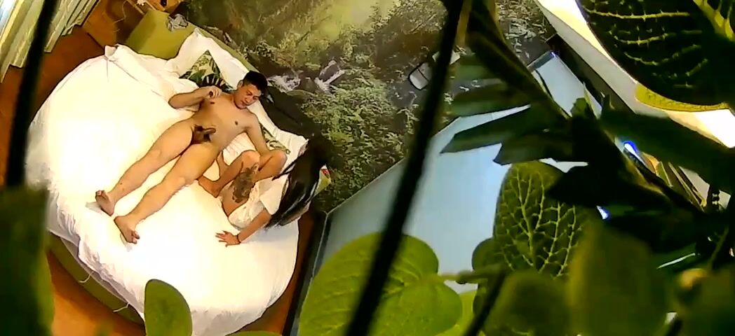 绿叶房没啥性经验的小伙被长发美眉撸硬鸡巴没搞多久就射了