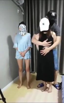两个欠钱的妹子被拉到酒店直播抵债